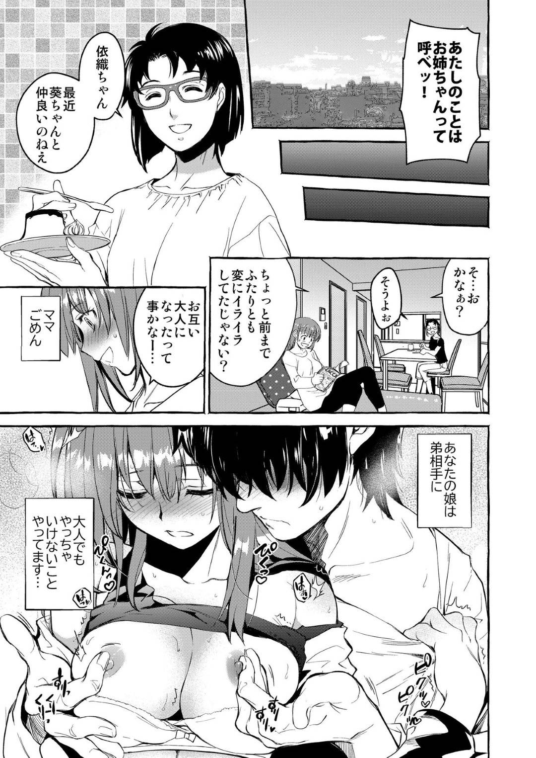【近親相姦寝取りエロ漫画】彼女を悦ばす方法を相談された姉は、姉弟で挿入禁止でエッチな事をしていた。ある日、姉がバイブを使ってオナニーしている事がバレてしまい、弟に押し倒され近親相姦セックスする【HEIZO、鬼頭えん】 マイページに追加 マイページへ移動 陰キャの弟にバイブでオナニーしている事がバレた姉の依織は、弟に押し倒され中出しセックスで犯される!彼氏とのセックスでも満足できなかった依織は、弟から与えられる快楽に堕ち、近親相姦セックスでアクメする! カテゴリー逆レイプ催眠アプリ キャラ母親アマゾネス囚人忍者 見た目ロリ制服ノーブラ 体位・プレイ逆レイプデカマラ輪姦 場所部室トイレ その他タグいちゃラブオナニー みんなの評価 (13 評価平均値: 4.46 out of 5) Loading...※5段階の簡単評価です。★を選択することで簡単に評価できます。 コメントを残す コメントをキャンセル コメント 名前 email confirm* post date* 日本語が含まれない投稿は無視されますのでご注意ください。(スパム対策) このエロ漫画と同じ 逆レイプ 催眠アプリの関連エロ漫画です▼▼ 【アズールレーンフルカラーエロ漫画】ハレンチメイド姿のシリアスは、ご主人様にご奉仕セックスで精液を搾り取る【nanohana】 【ドラゴンクエストXIエロ漫画】魔法によって性別を女に変えられてしまったカミュは、イレブンに告白されイチャラブ中出しセックスでアクメする【江田】 【俺の妹がこんなに可愛いわけがないフルカラーエロ漫画】ツバオに洗脳された桐乃とあやせは、ツバオに犯される【Alice.Blood】 【東方Projectエロ漫画】藍の寝込みを襲うふたなり霊夢は、中出しセックスをするも早漏ですぐにイってしまう。その日から、霊夢は藍に早漏対策で特訓させられる【トゥダ】 【年上お姉さんエロ漫画】幼馴染でお姉さんの綾をエッチな目で見るようになった男子は、綾に誘惑されイチャラブセックスで筆おろし【ハチ公】 【レコラヴエロ漫画】マリアは、ベリィに浜辺でフェラをさせられ青姦中出しセックス。さらにシャワー室で他人に喘ぎ声を聞かれながら中出しセックスでアクメする【SMAC】 【淫乱JK3Pエロ漫画】彼女か浮気相手か、どちらも選べずにいると2人からエッチな誘惑をされ3P中出しセックスでアクメする【たらかん】 【ゆるキャン△エロ漫画】野クルで野外露出活動をする事になりそれぞれがオナニーしたり露出活動を満喫する【茶琉】