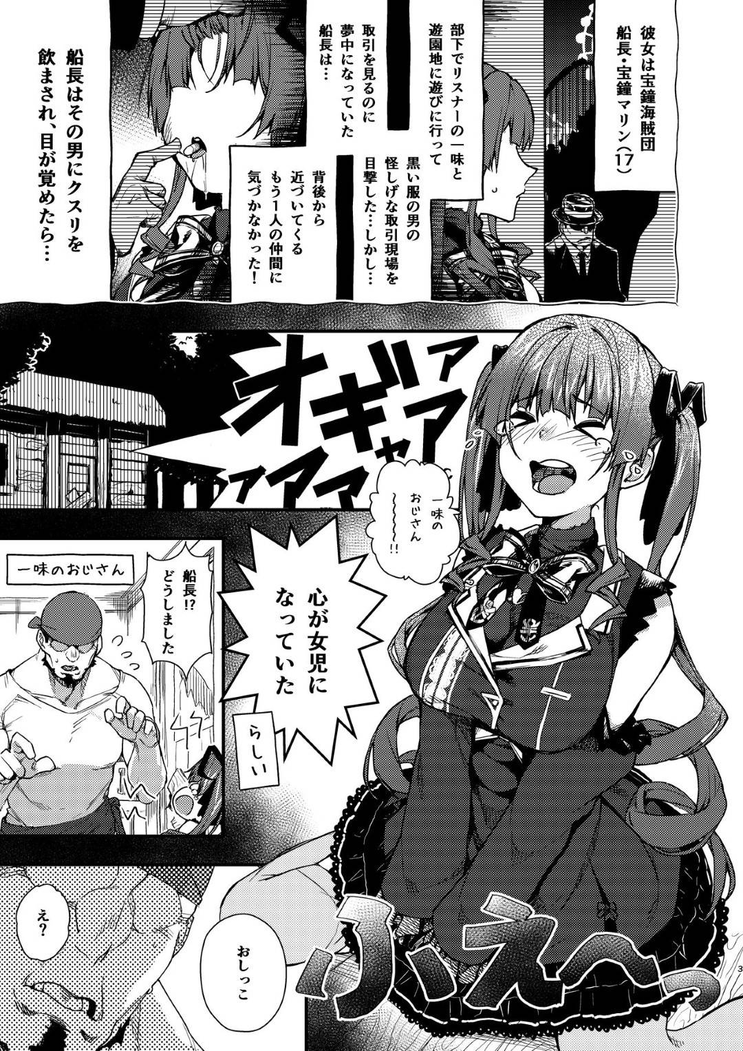 • 【宝鐘マリンエロ漫画】心が幼児化したマリンがムラムラしてしまい、男は生ハメセックスでアクメさせる【矼房】