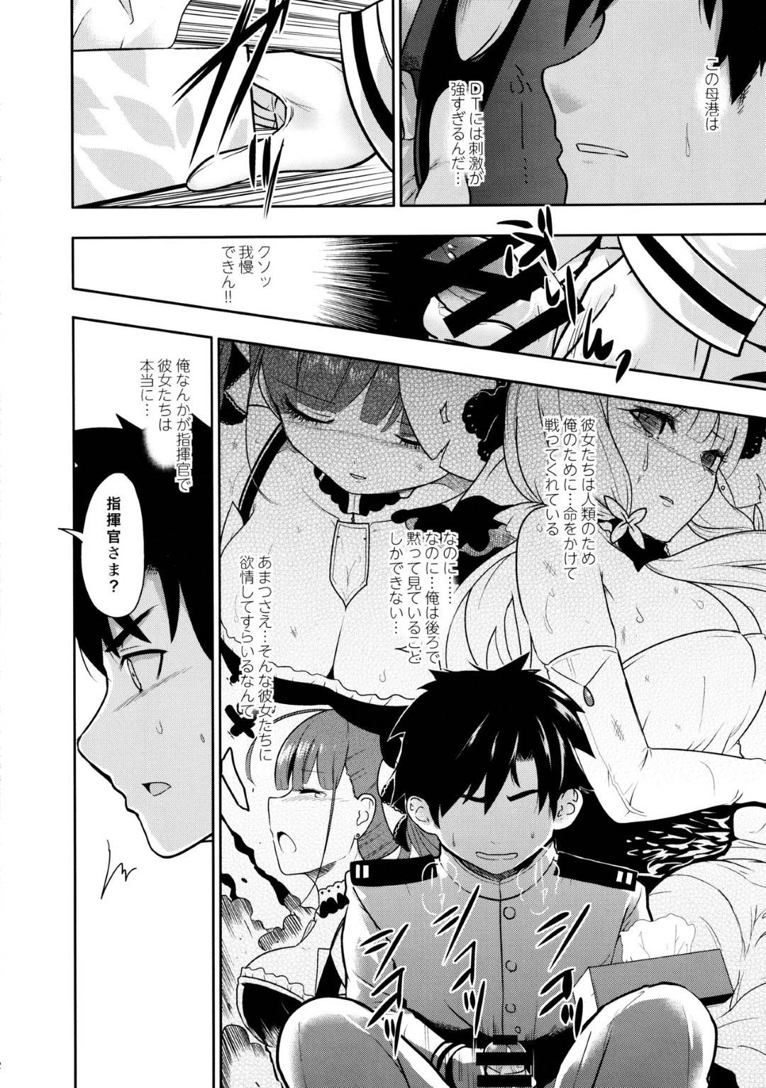 童貞指揮官は、一緒に仕事をしてくれている女の子達に発情しオナニーしていると、イラストリアスに見つかり射精してしまう!そこへフォーミダブルも乱入しパイズリで責められ3Pイチャラブ中出しセックスでアクメする!