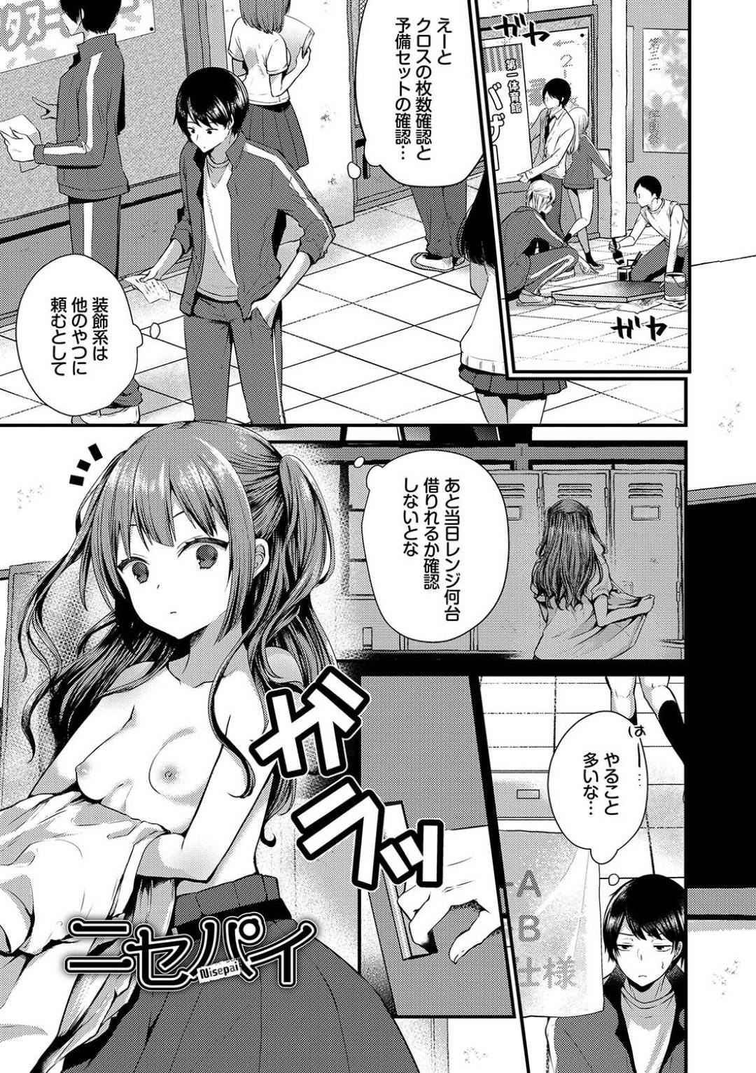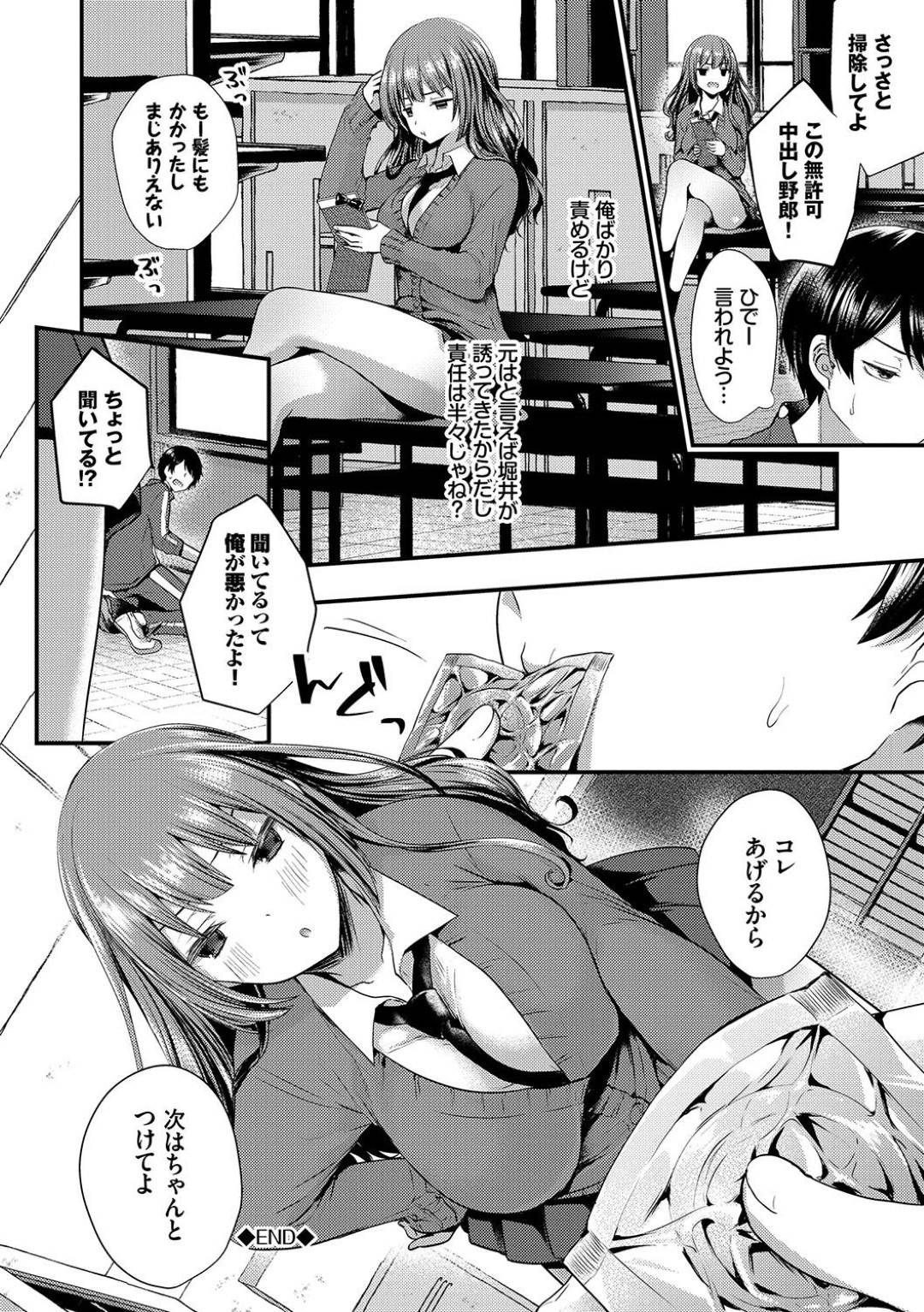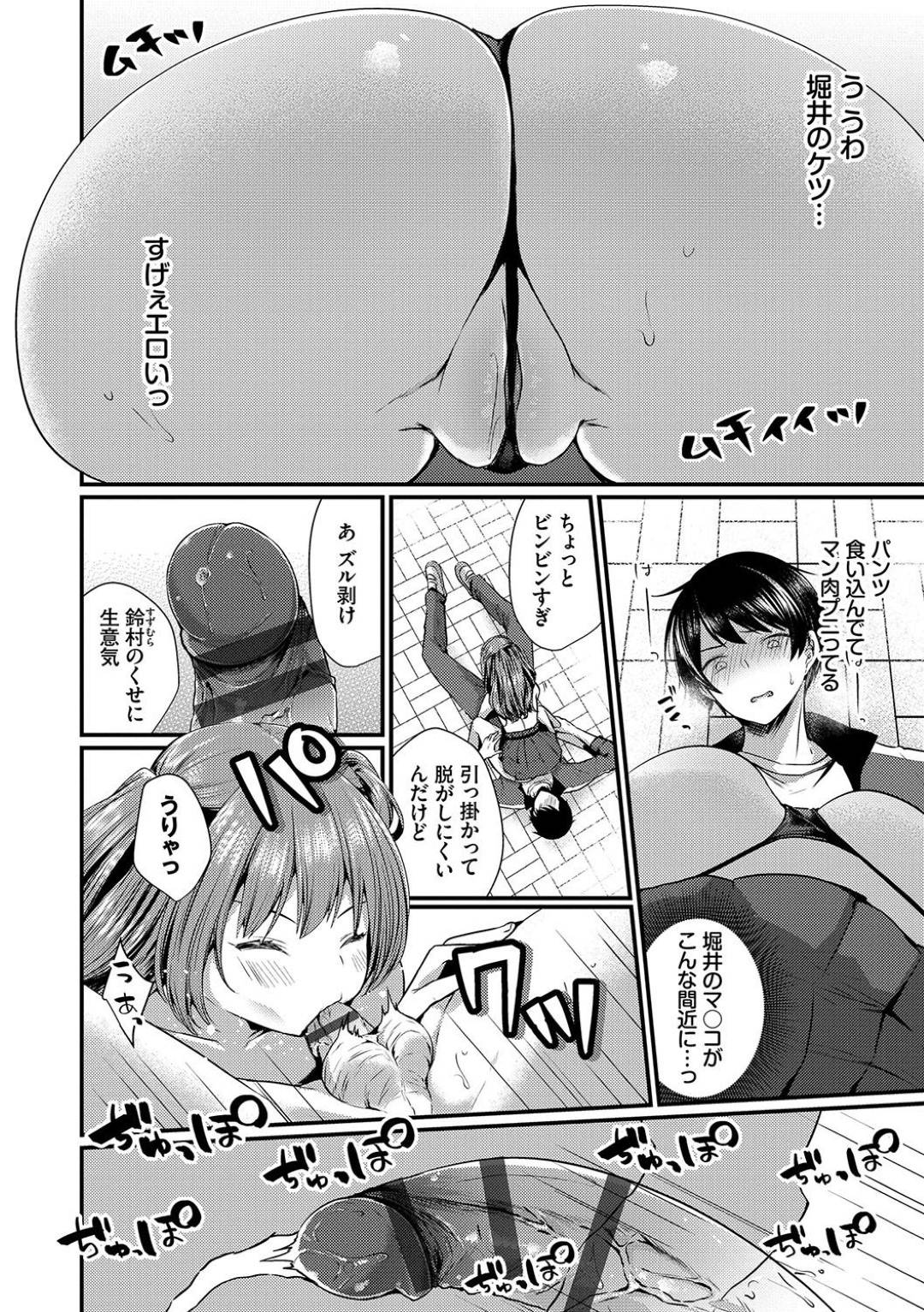 学祭の準備で教室に入った鈴村は、教室で上半身全裸状態の堀井に遭遇する!するといつもは巨乳のはずの堀井が貧乳化しており、秘密を知ってしまう!逆ギレした堀井に押し倒された鈴村は、口止め料として体を愛撫されフェラ!童貞と挑発された鈴村は、クンニすると中出しセックスで犯しまくる!