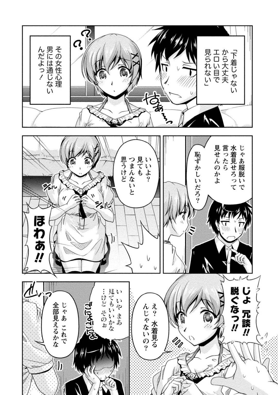 • 【水着美女エロ漫画】水着だから恥ずかしくないと見せつけてくるショートカットの巨乳美女。男はエロい水着姿に我慢できず責め告白しイチャラブ中出しセックスでアクメする!【寛秀隆】