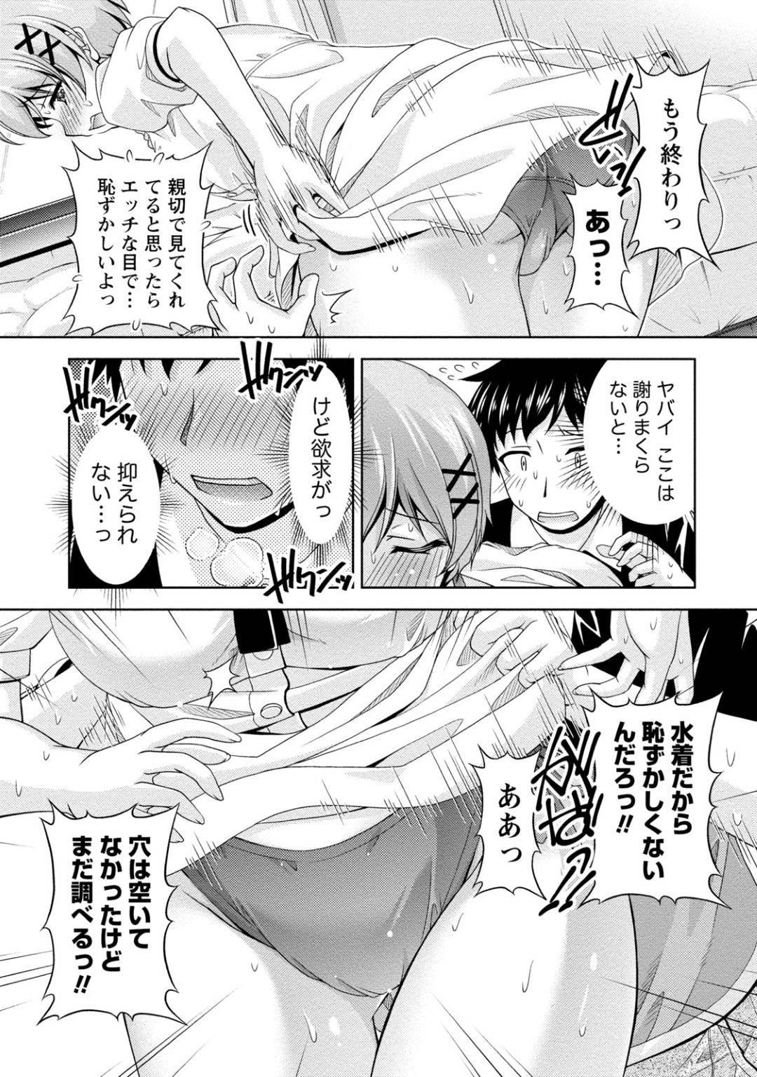 【水着美女エロ漫画】水着だから恥ずかしくないと見せつけてくるショートカットの巨乳美女。男はエロい水着姿に我慢できず責め告白しイチャラブ中出しセックスでアクメする!【寛秀隆】