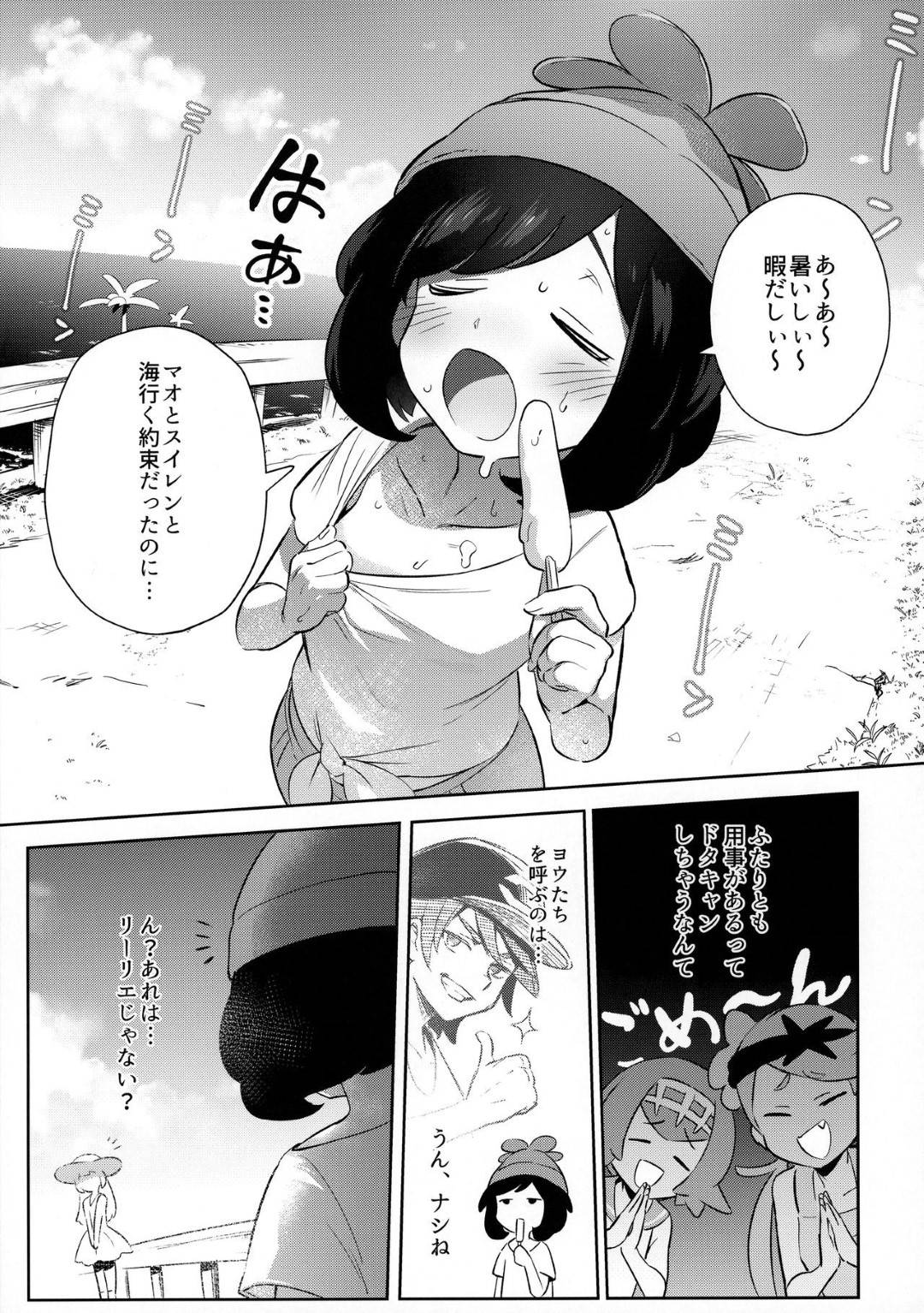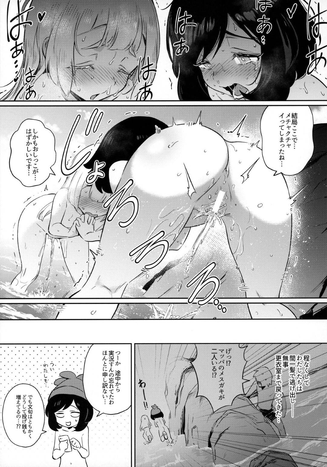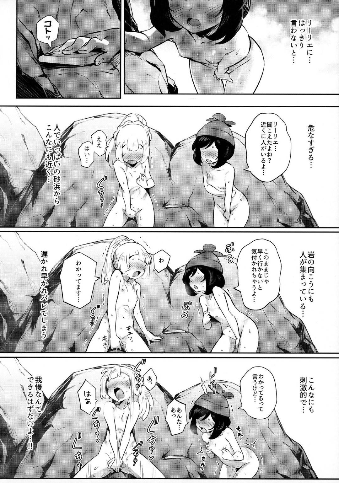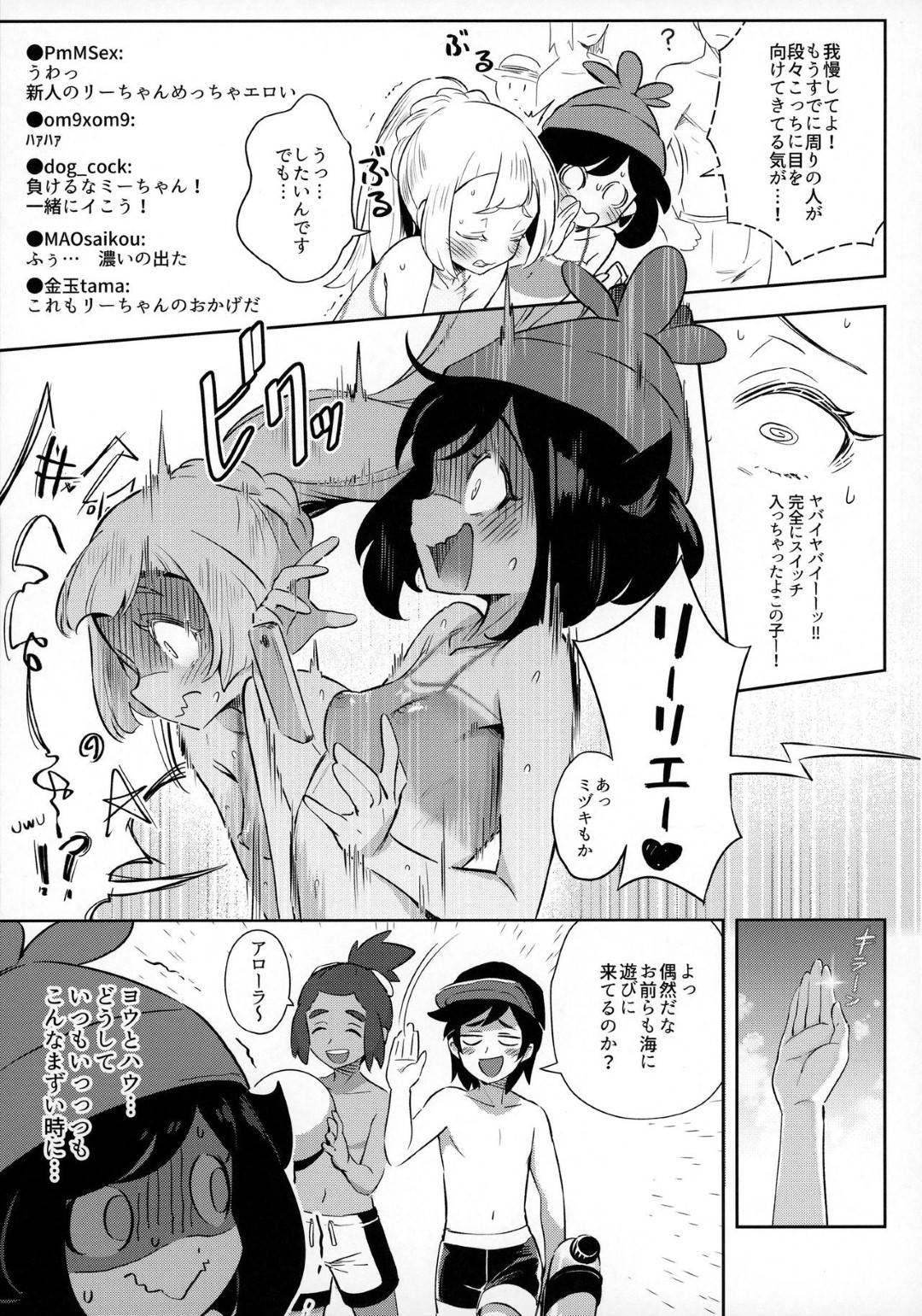 エッチな遊びをしていた所をリーリエに知られていたミヅキは、仲間に入れて欲しいと言われ一緒に遊ぶ事に。ボディーペイントで裸同然の格好をした2人は、生配信でエッチなポーズを取り、浜辺を散歩!岩陰に隠れると我慢できず2人はレズプレイでアクメする!