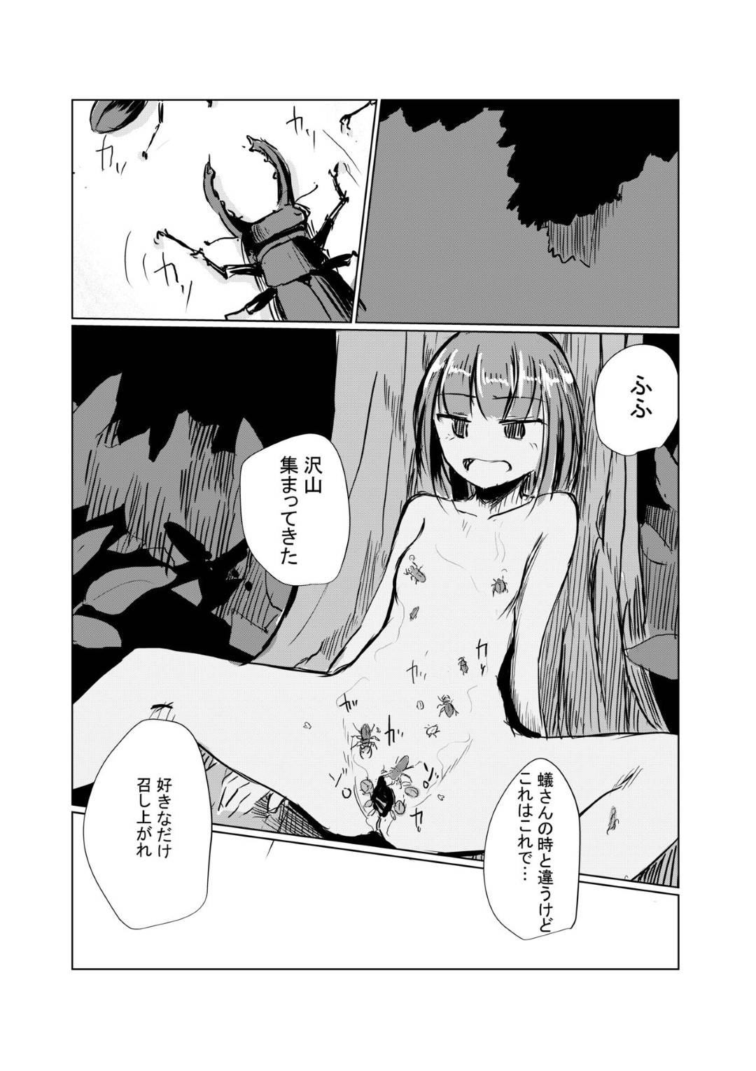【ロリ少女虫姦エロ漫画】深夜家族が寝静まってから露出して散歩へ行くロリ少女はシロップを身体中に塗り中も外も虫姦で愉しみ夜通し遊び放尿する【ろれる】