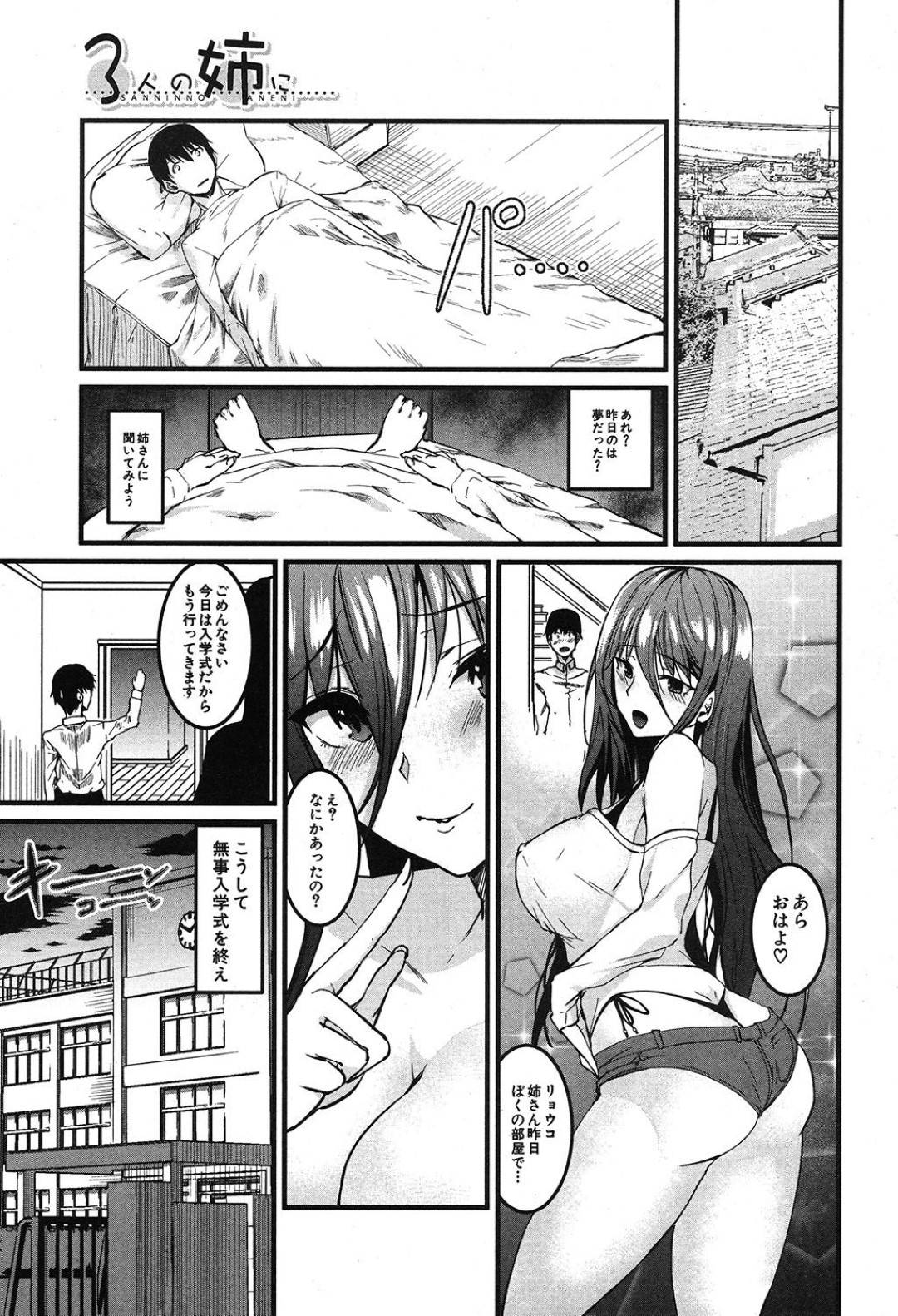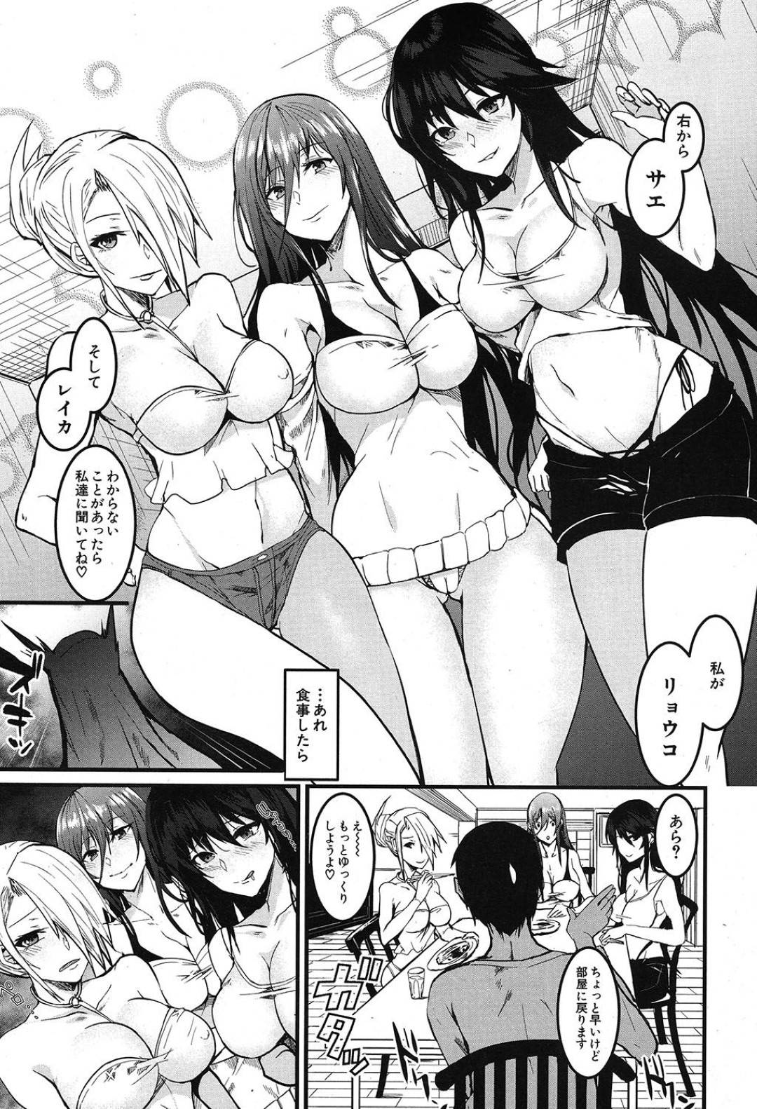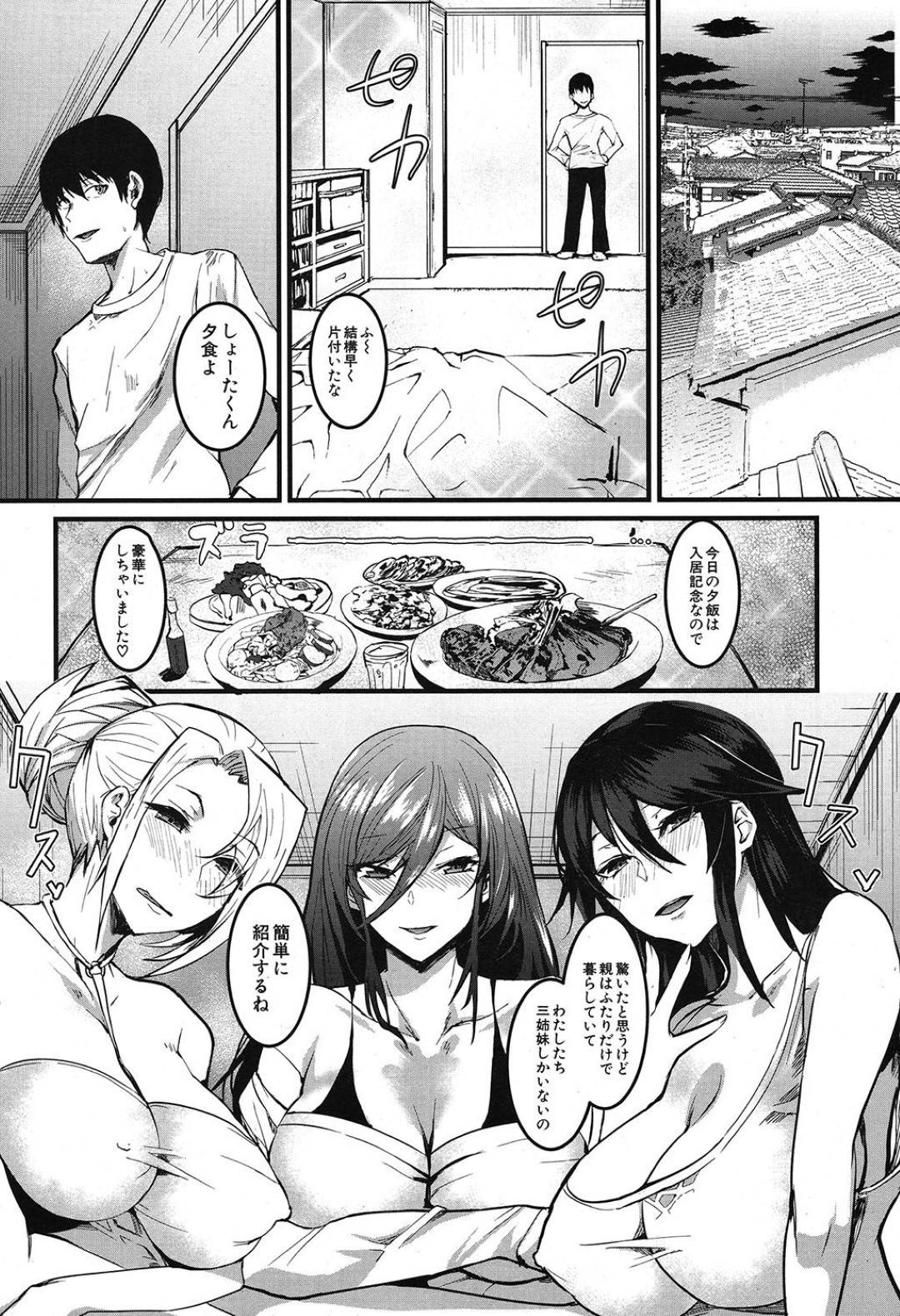 【姉妹4Pハーレムエロ漫画】居候してきた親戚の男の子を睡眠薬入りの料理で持て成して襲う美人な巨乳JKの三姉妹は、何度も射精させ4Pハーレムセックスしまくる【浅ひるゆう】