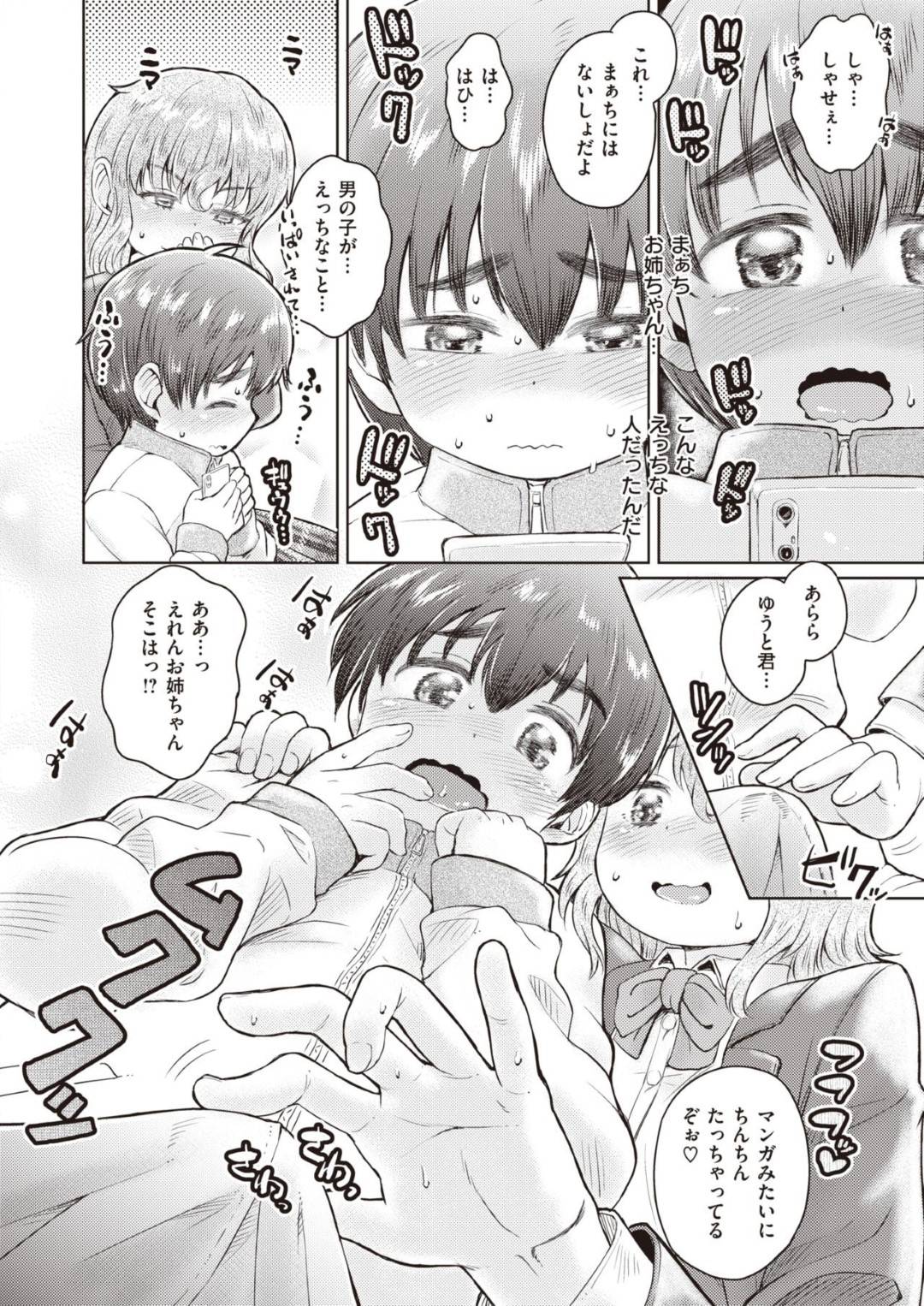 【おねショタ3Pエロ漫画】2人のJKお姉さんにイタズラされるショタは、小さいちんこを可愛がられ手コキで射精【タカハシノヲト】