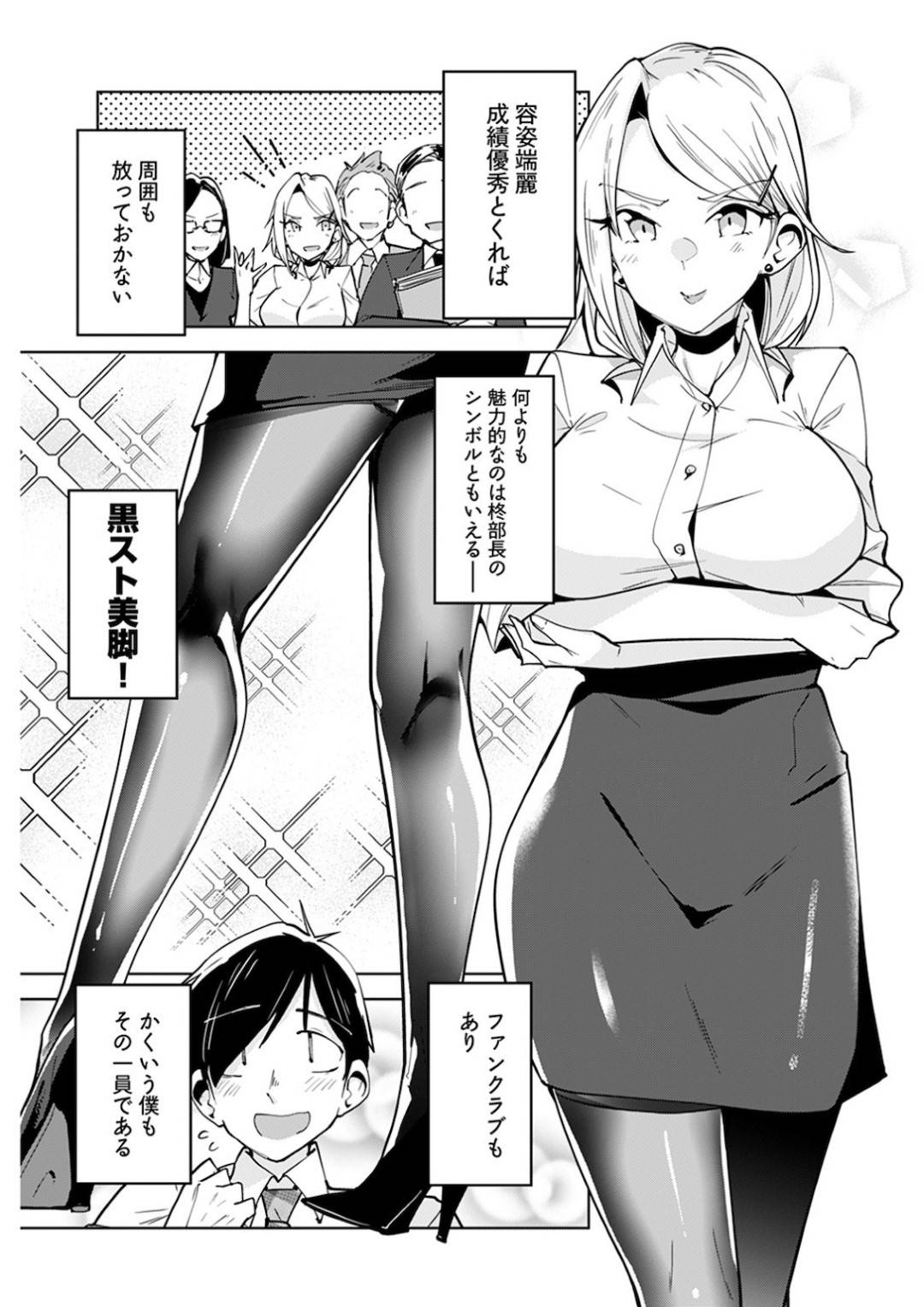 【足フェチエロ漫画】黒ストを履く女部長の足が大好きな部下の男は、車内で仮眠をとる部長の足の匂いを堪能する。目が覚めた部長に言葉責めされながら足コキされ射精する【ウシハシル】