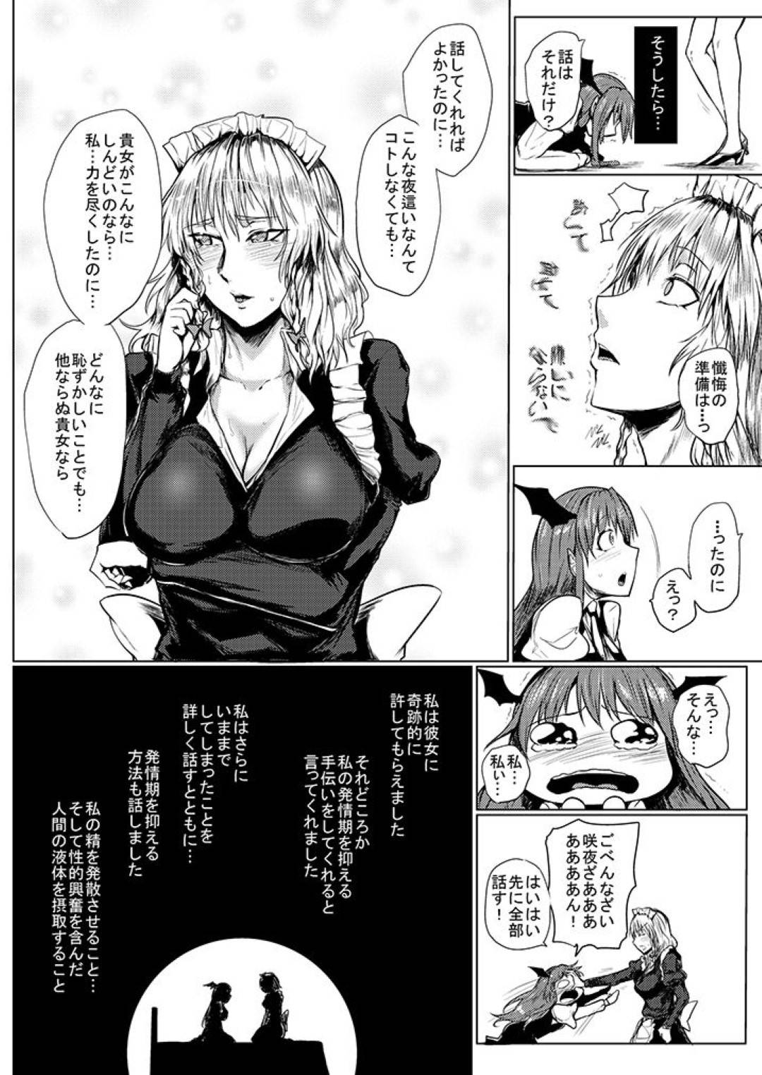 【東方Project】夜這いしていた事がバレた小悪魔は咲夜に謝罪すると許してもらい、中出しセックスで咲夜の処女を喪失させる【サガッとる】