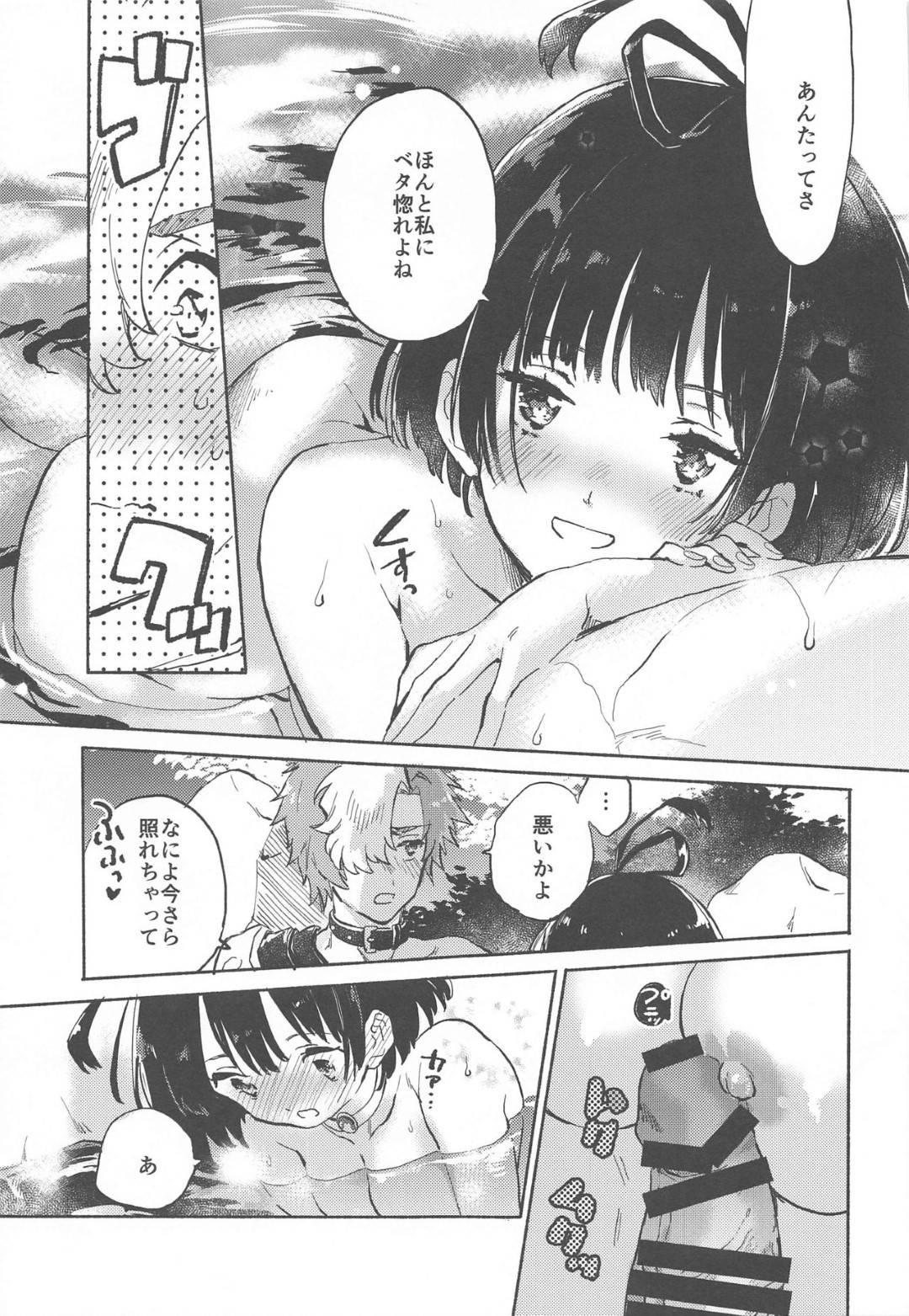 【甲鉄城のカバネリエロ漫画】温泉旅館に旅行に来た生駒と無名。露天風呂で生駒はフェラされると発射し部屋でイチャラブ中出しセックス【芹澤ナエ】