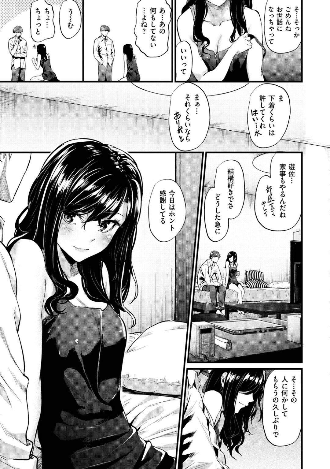 【イチャラブエロ漫画】父の友人夫婦の一人娘に告白されるも泣かせしまう男。夜、女の子の部屋を訪れるとオナニーしているところを目撃すると男は迫られイチャラブ中出しセックス【折口】