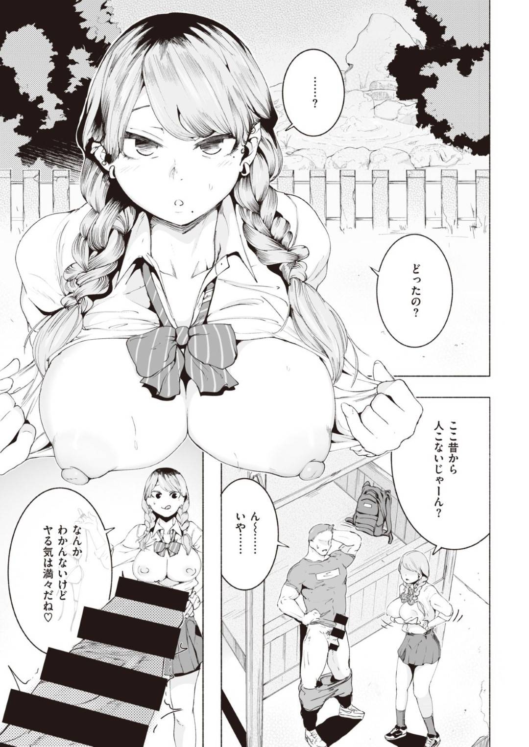 【幼馴染いちゃラブエロ漫画】幼馴染に野外でフェラする巨乳の淫乱JKは制服を脱いでおっぱいを見せつけ誘惑し、揉みしだかれて濡れると正常位でゴムハメセックスする【デルタナイン】
