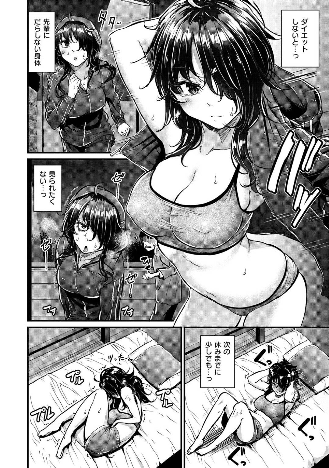 【イチャラブエロ漫画】ゲーム仲間の先輩のことが好きな巨乳美女は、ダイエットのしすぎで倒れてしまい先輩に介抱され、キスで誘惑しいちゃラブ生ハメセックスで初体験する!【みくに瑞貴】