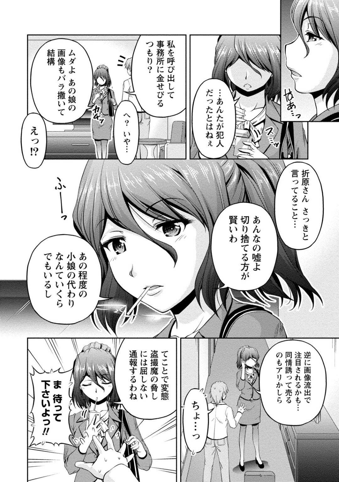 【枕営業アイドルエロ漫画】ADの男に枕営業の売り込みをするアラサーマネージャーは、チャラ男プロデューサーに盗撮写真をネタに脅され生ハメセックスする!【寛秀隆】