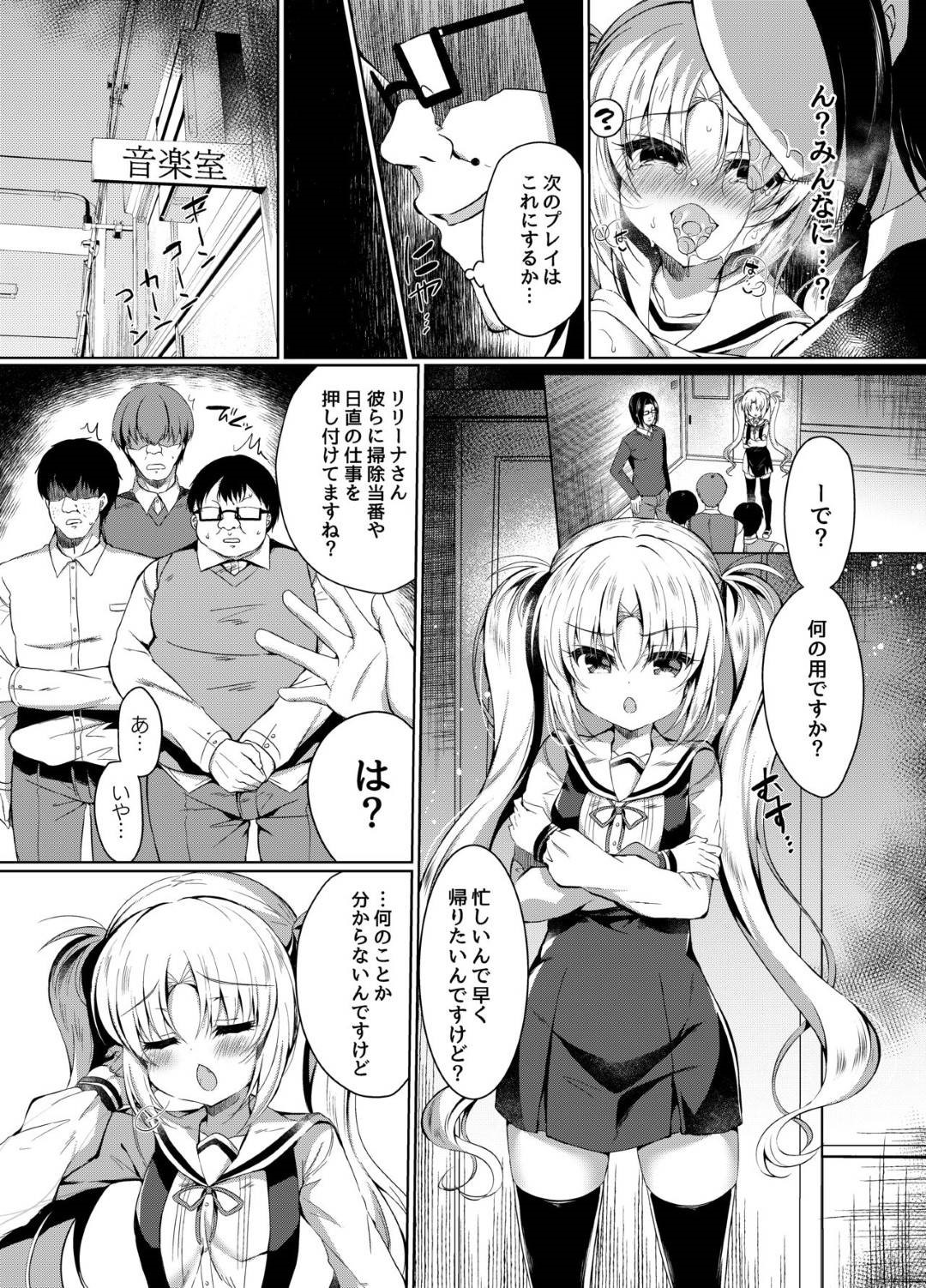 【メスガキ催眠輪姦エロ漫画】ひそかに催眠調教し続けられる女王様気取りのメスガキリリーナは、先生の提案でオタク3人組を呼び出し輪姦される!【鈴音れな】
