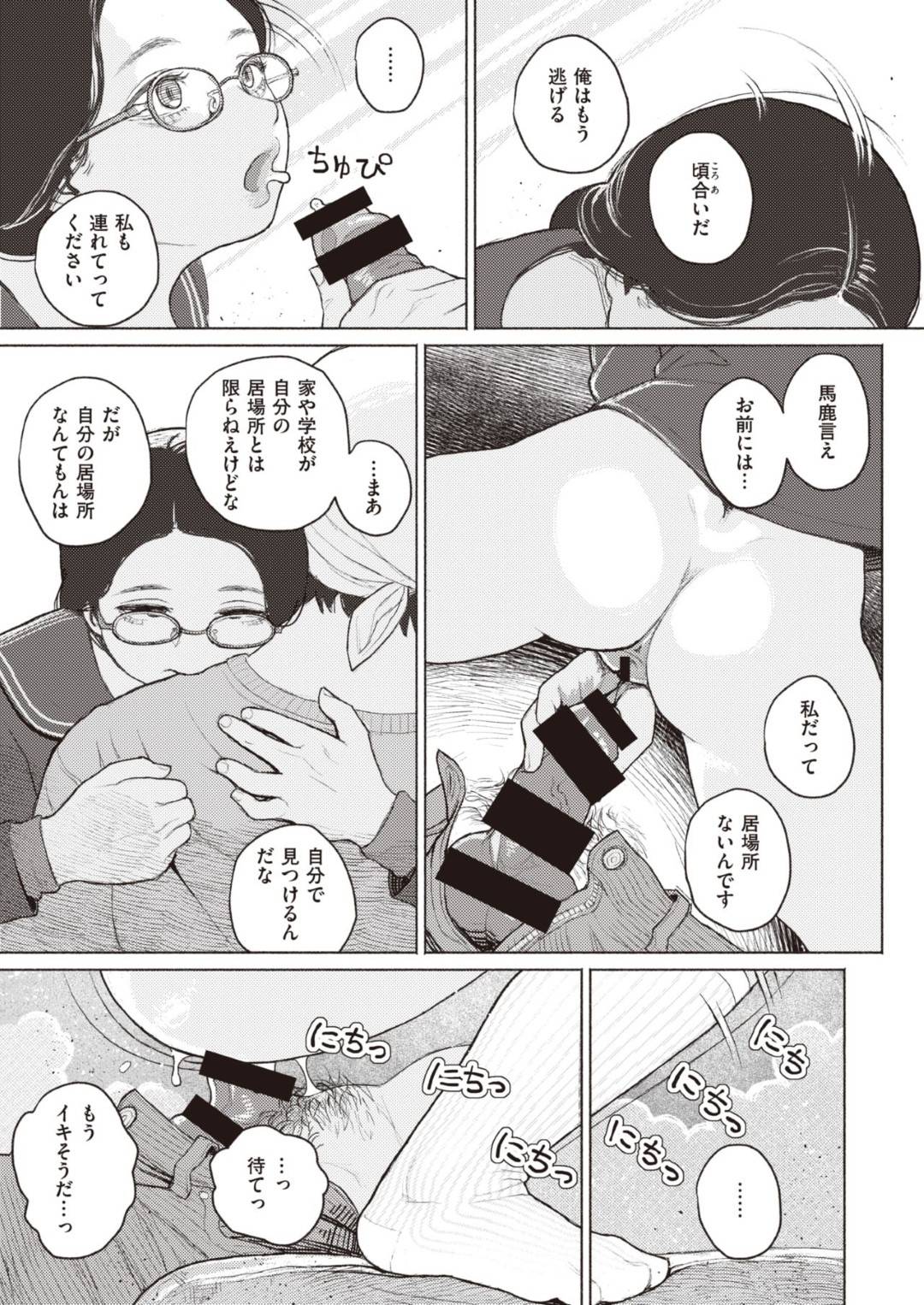 【JK和姦エロ漫画】廃家で授業をサボっていたJKは、逃亡犯に会うと目隠し首輪を装着され放置される。夜になり体を弄られると逃亡犯を求め受け入れる【なまえれんらく】